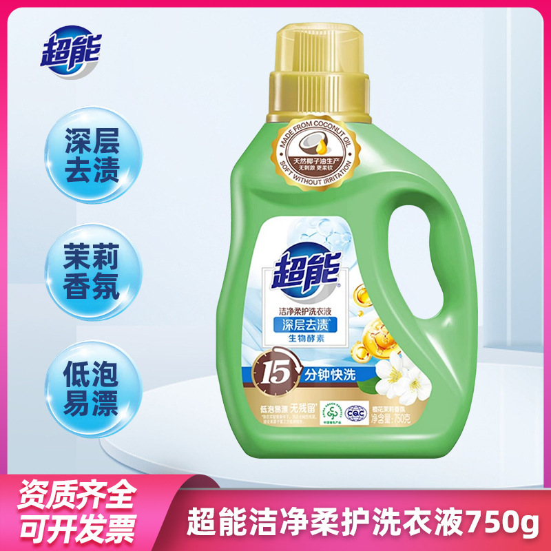 超能洁净柔护洗衣液750g去污防串色低泡易漂留香深层去渍茉莉香实