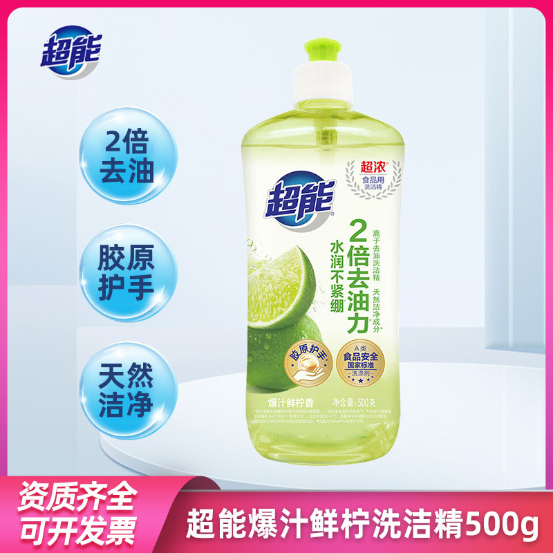超能洗洁精柠檬500g洗洁精柠檬护手蔬菜水果食品用厨房餐具去油污