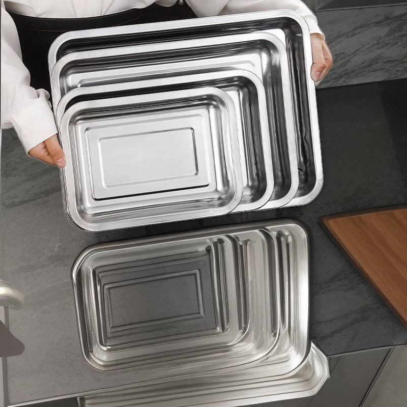 不锈钢方盘深浅蒸饭盘加厚长方形烧烤烤鱼盘方盘子熟食盘烧烤托盘
