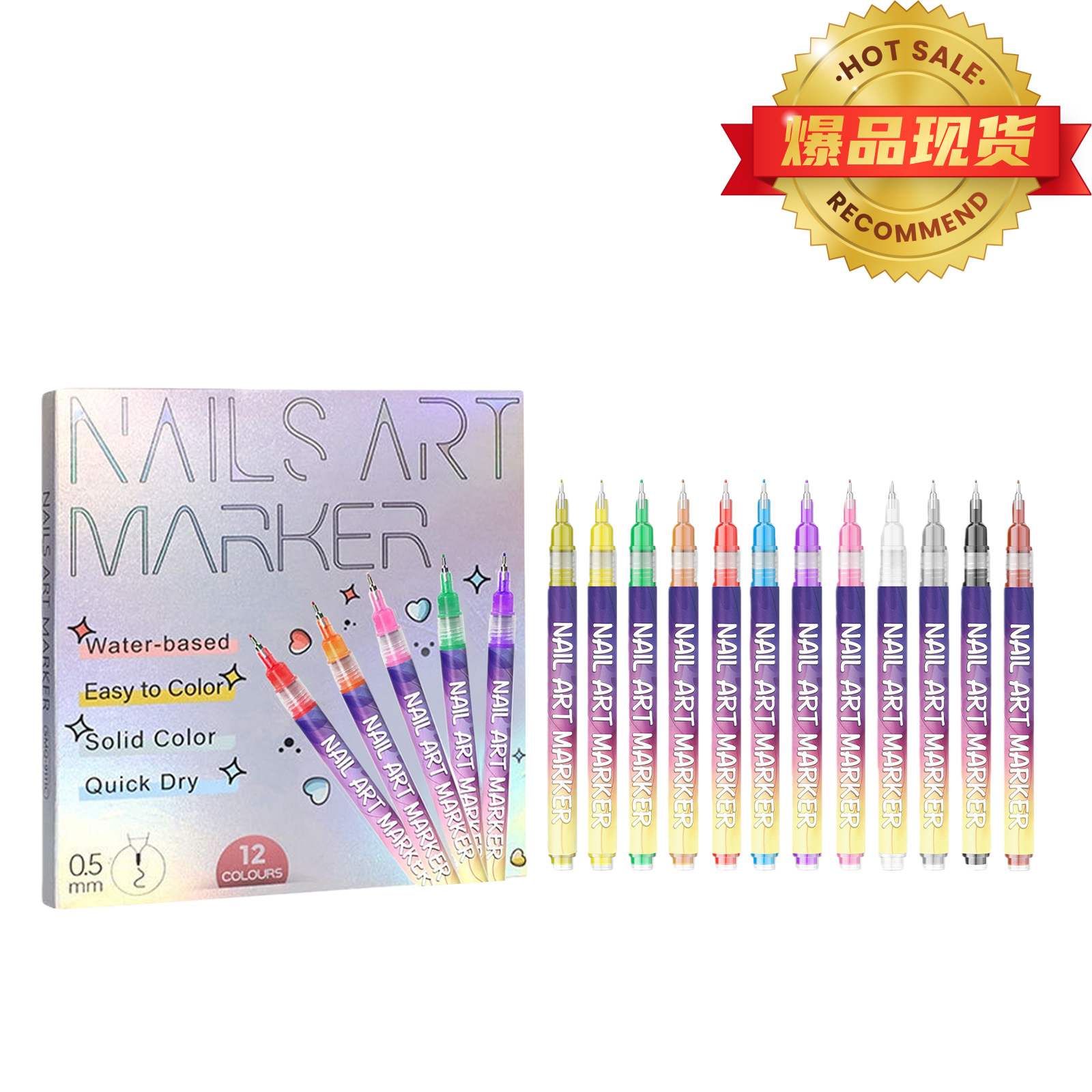 现货 12 Colors Nail Art Markers Pens Set DIY美甲彩绘笔