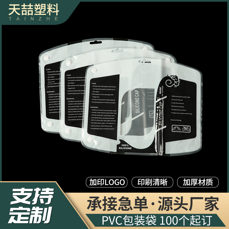 工厂直供pvc塑料按扣包装袋游泳帽袋密封防潮包装袋可印制logo