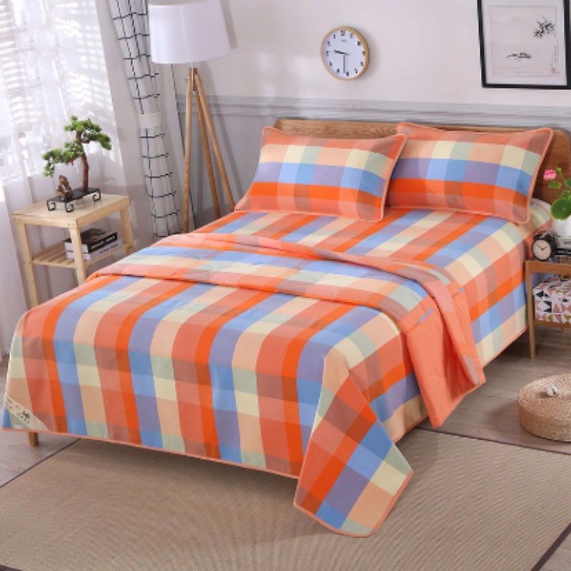 老粗布三件套纯棉双人床单床上用品四季用家用格子夏凉被全棉枕套