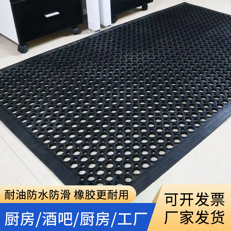 可排水厨房隔水胶垫圆孔加厚耐磨拼接门垫餐厅厨房防滑橡胶脚垫