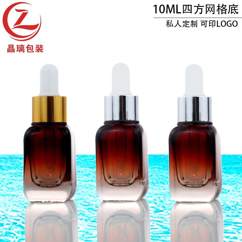 厂家供应精华液10ml四方瓶 网格底原液玻璃瓶 化妆品精油分装旅行