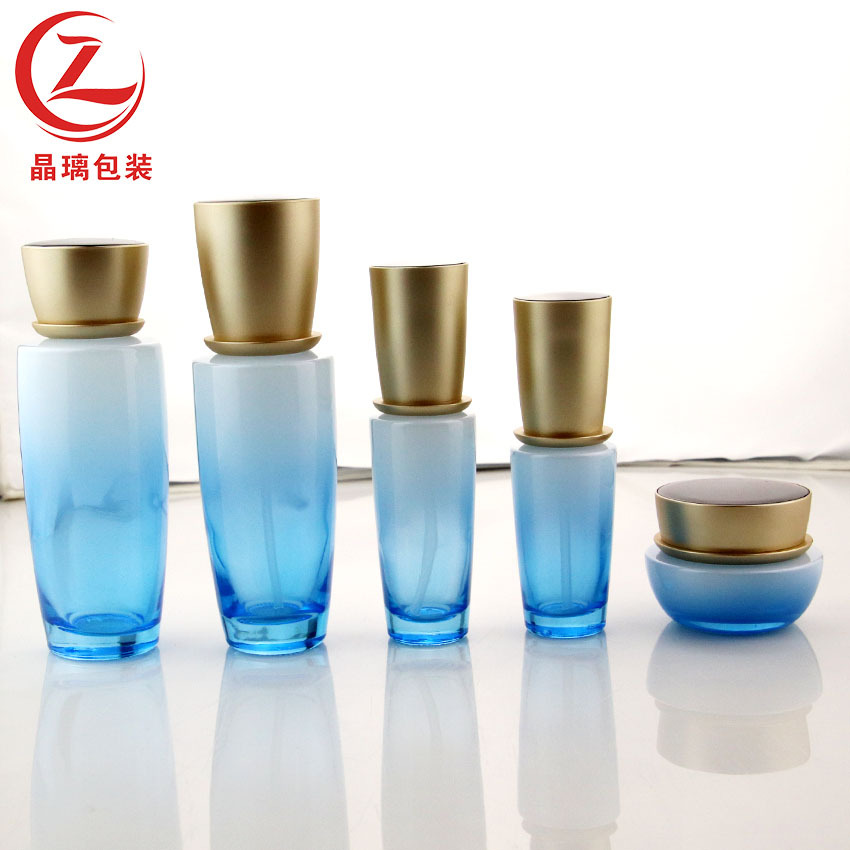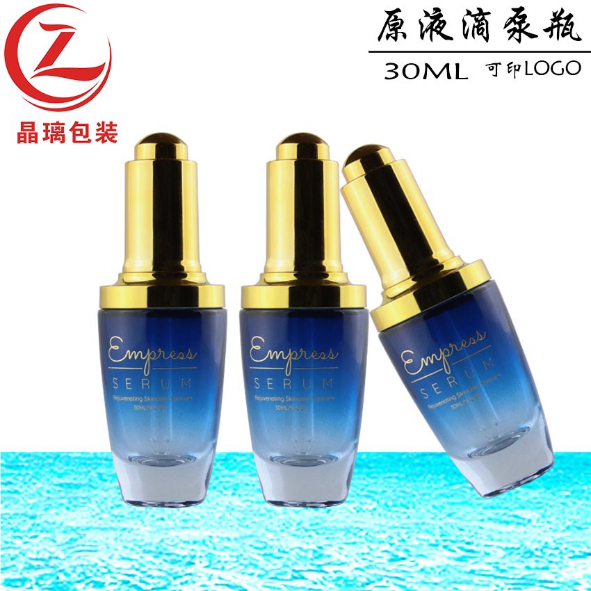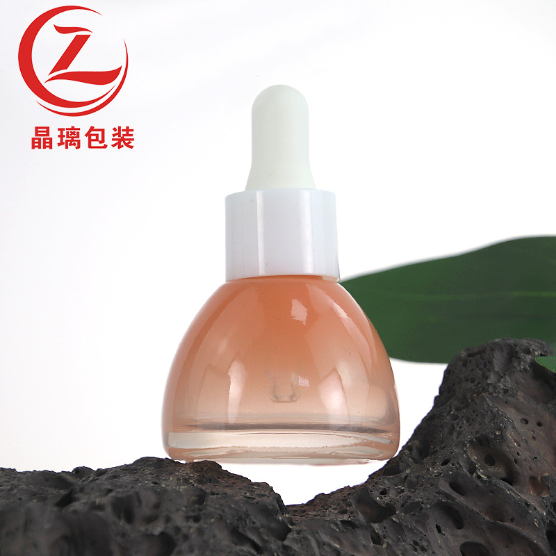 晶璃喷色玻璃滴管精华瓶化妆品厚底扁形瓶玻璃分装肩套滴泵精油瓶