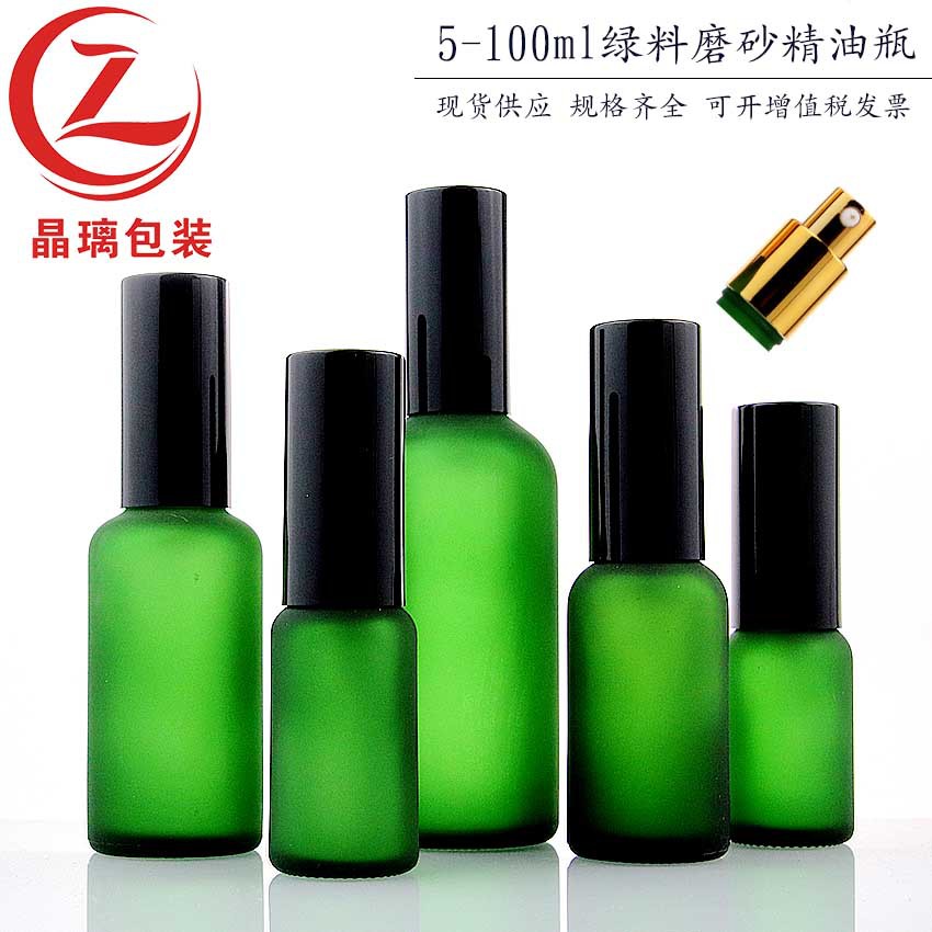 5-100ml磨砂绿色精油瓶 20ml喷雾瓶避光滴滴瓶胶头玻璃滴管精华油