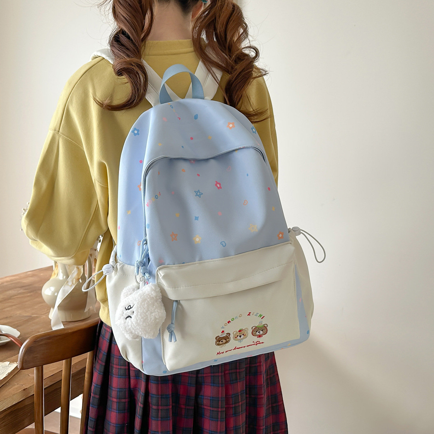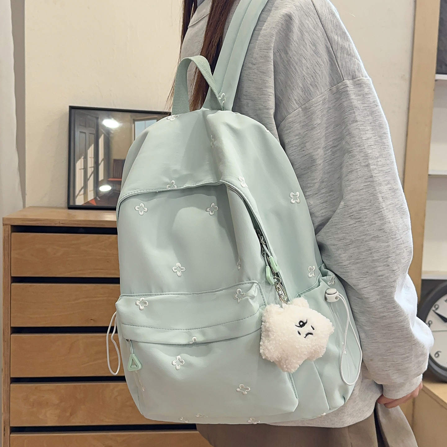 新款日系书包ins风小众高颜值糖果色刺绣背包初高中生轻便双肩包