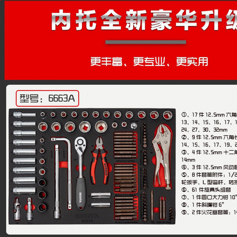 百思泰 330件升降款6663S机修工具组套套筒螺丝刀钳子套装批发