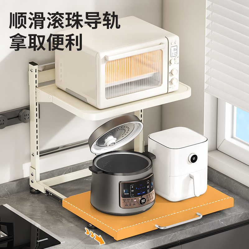 跨境专供可抽拉伸缩微波炉台面架厨房置物架亚马逊爆款承重收纳架