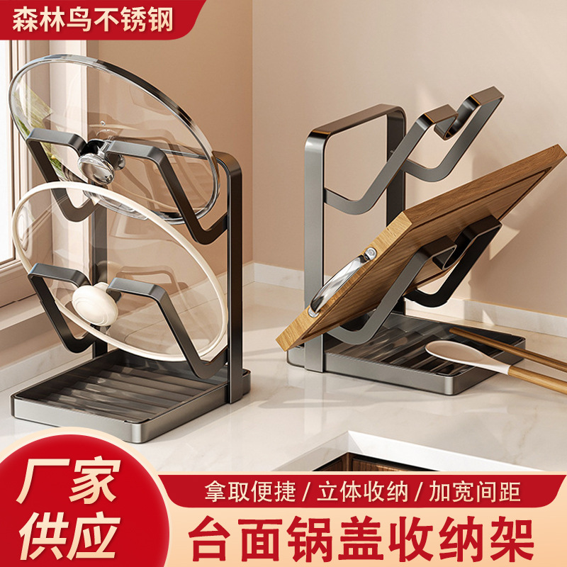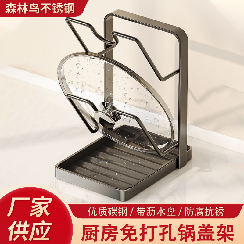 亚马逊爆款带沥水盆锅盖架大小通用厨房台面锅铲多功能收纳锅盖架