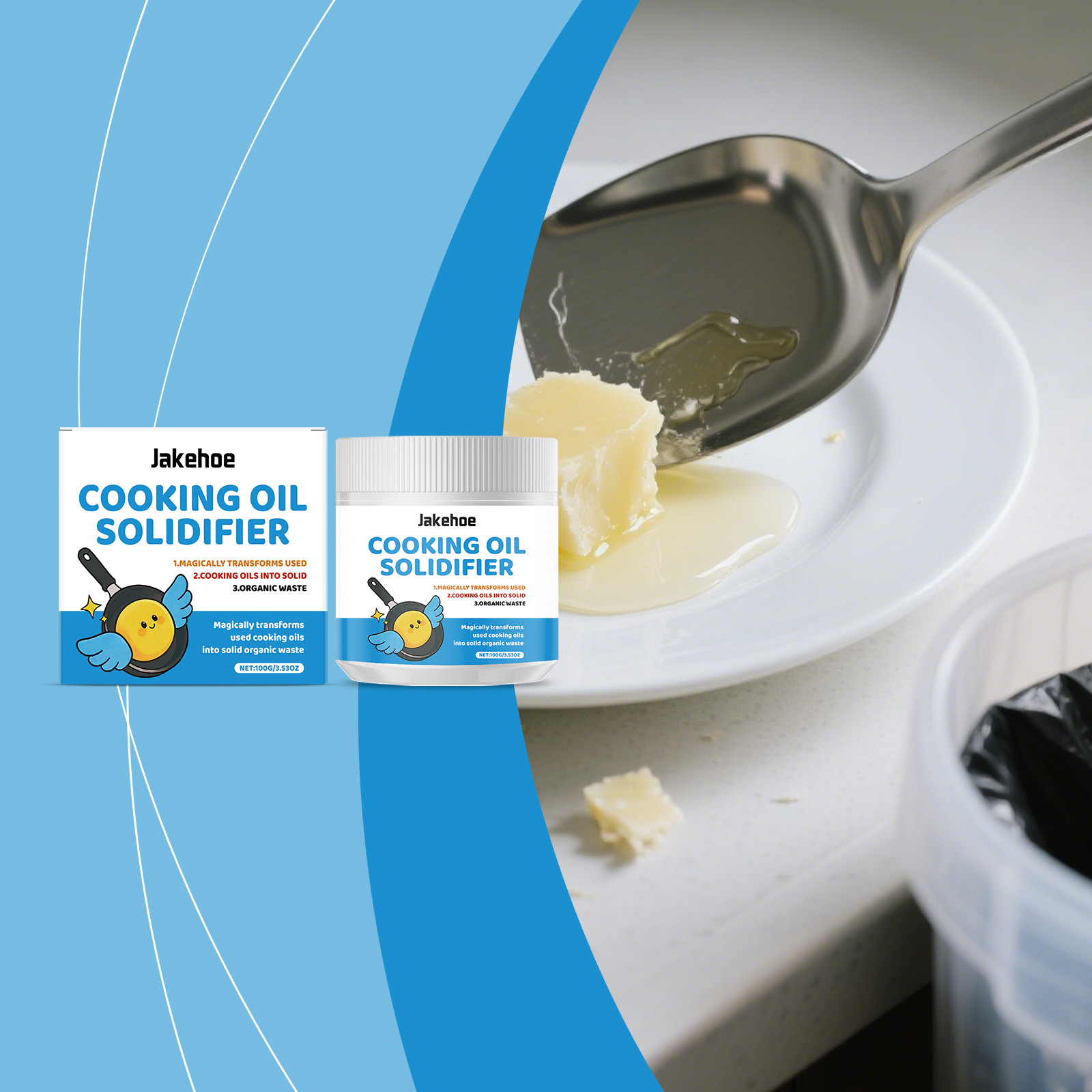 JAKEHOE 废油凝固剂 轻松凝固厨房多种废油易清洁不刺激处理剂