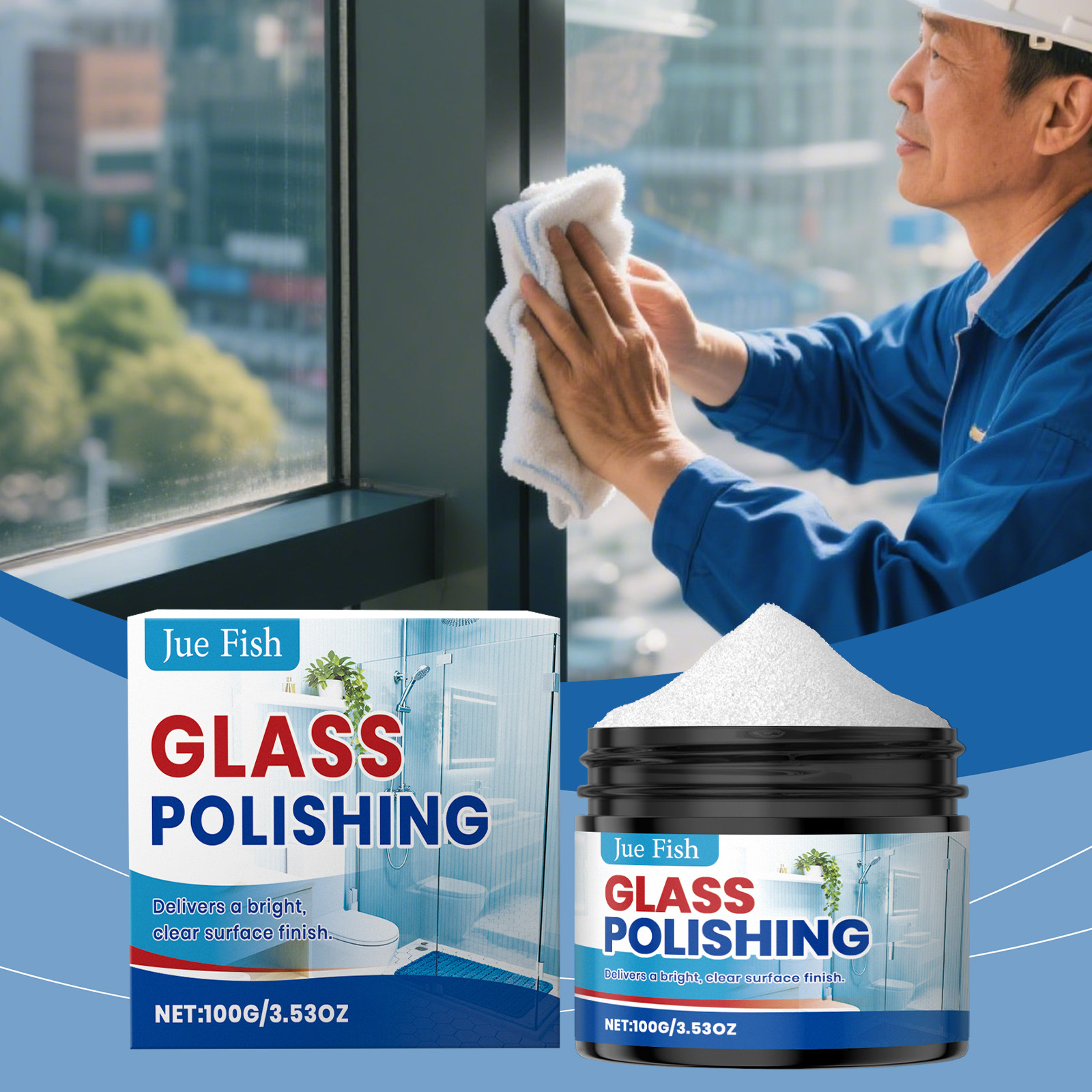 JUE FISH 玻璃抛光剂 日常亮泽通透窗面多用途居家商用玻璃护理膏