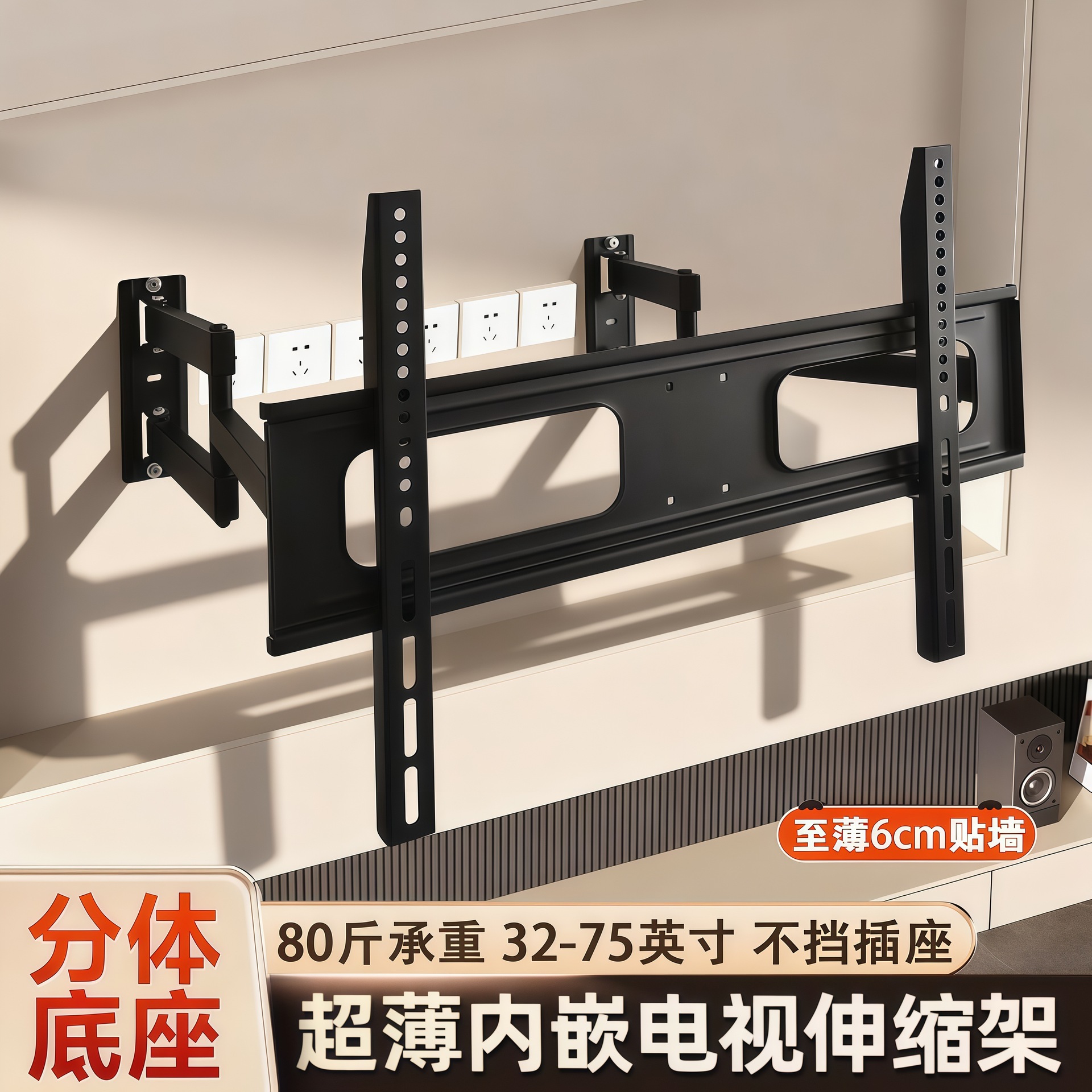 通用电视机挂架伸缩壁挂液晶显示器支架超薄壁挂架内嵌折叠支架