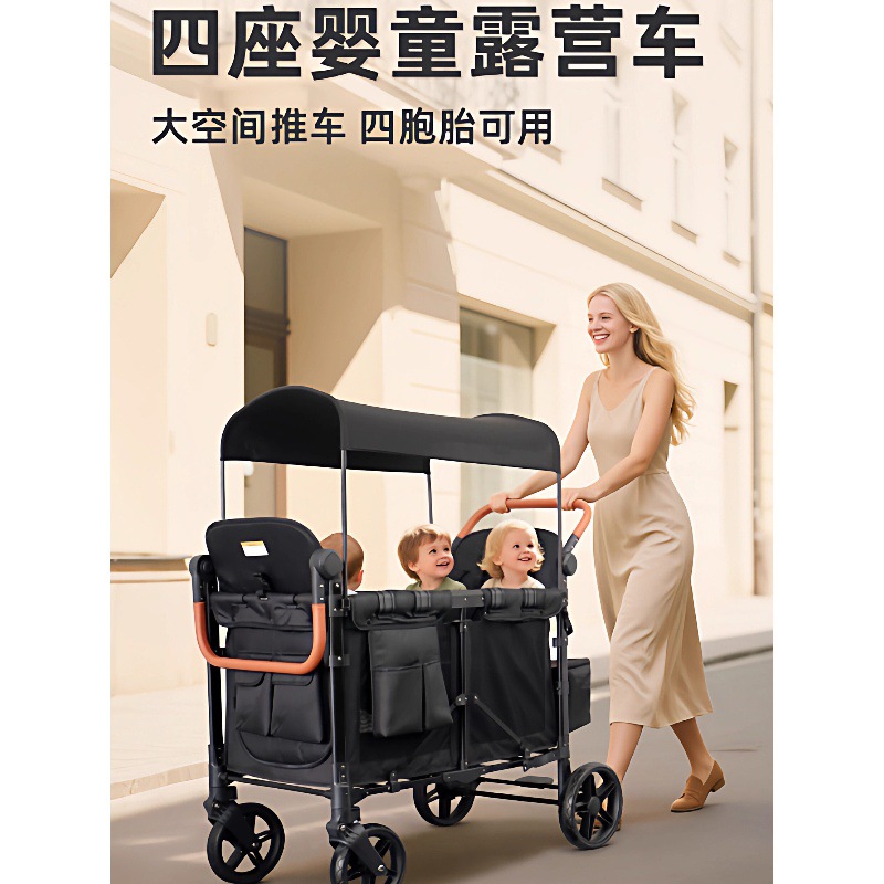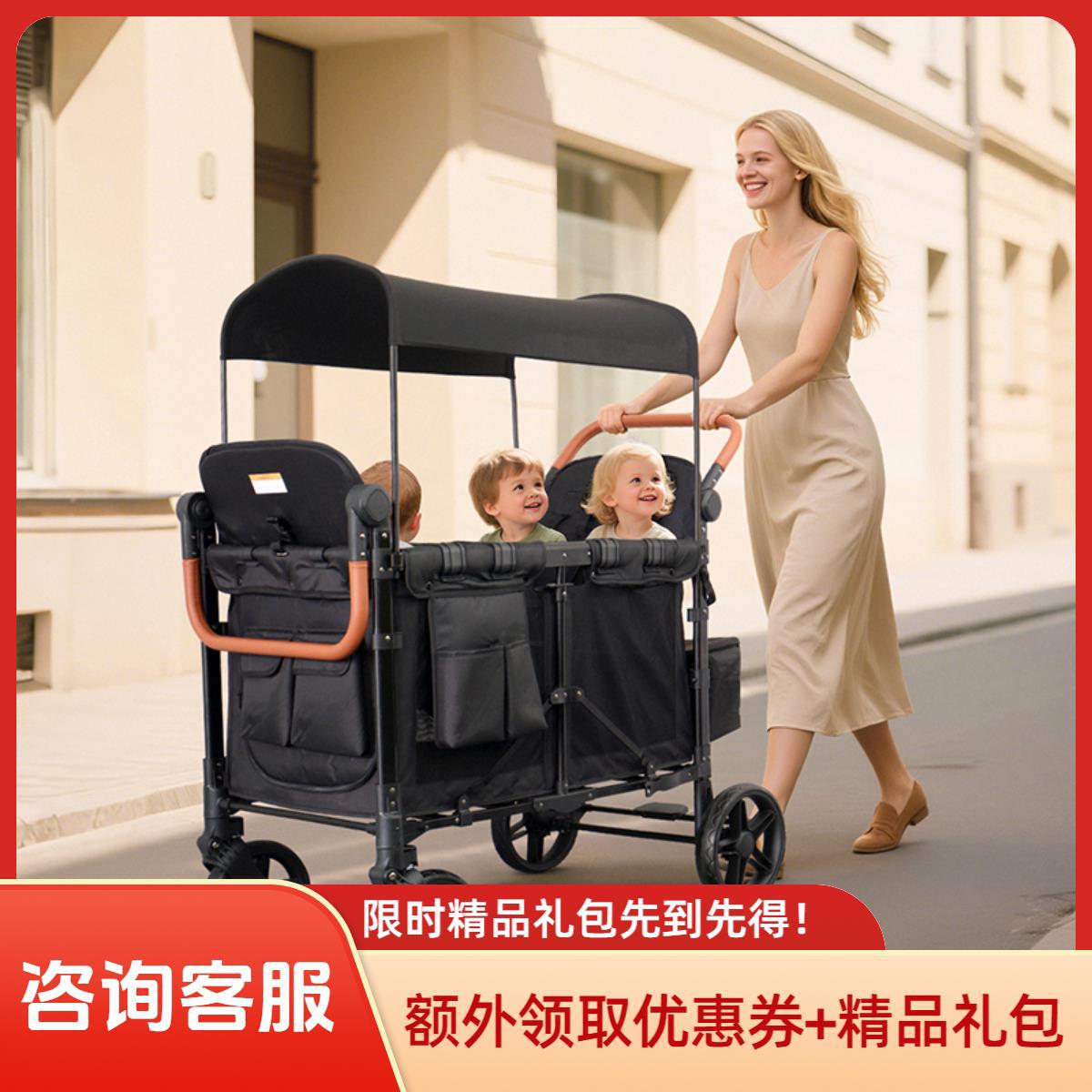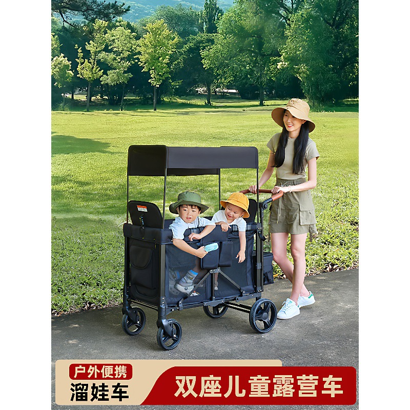 双胞胎儿童车宝宝推车四胎宝宝推车外出遛娃户外露营可折叠小推车