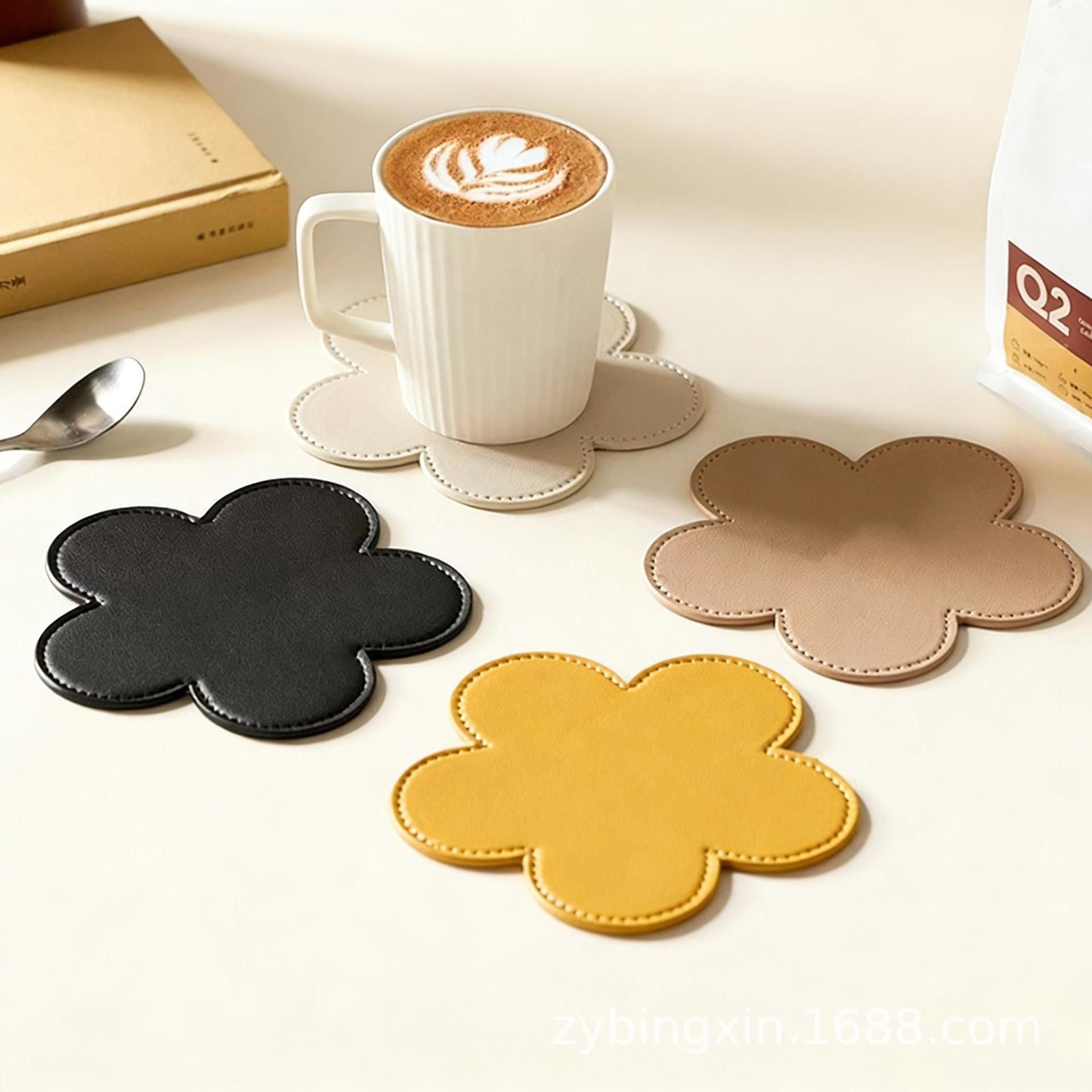跨境现货花朵pu皮革杯垫新款小清新花朵造型防烫隔热奶茶咖啡杯垫