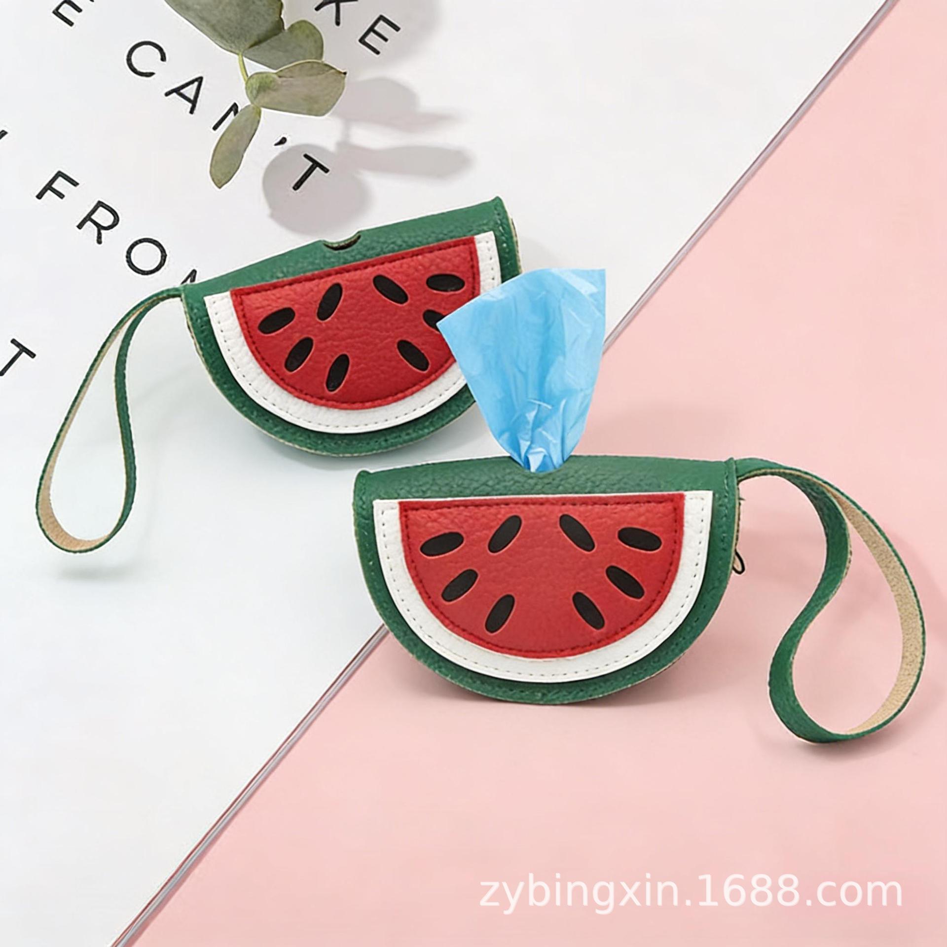 现货新款宠物拾便袋西瓜拉链小包水果零钱包外出遛狗便携式拾便袋