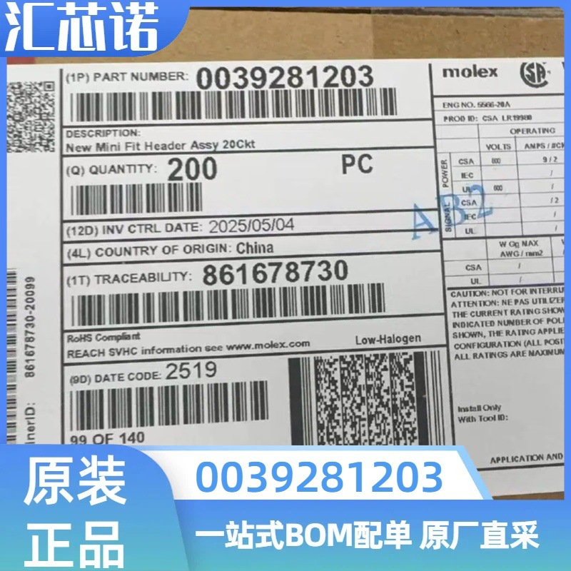 0039281203 39-28-1203 胶壳20P 间距4.2mm Molex连接器