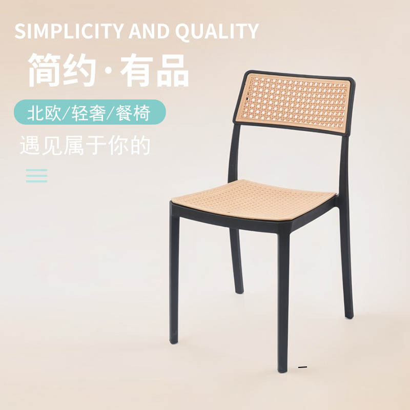 家用仿藤编餐椅现代简约酒店通用塑料靠背椅子阳台户外洽谈单人椅