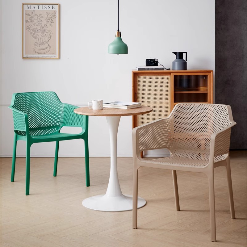 定制塑料椅子简约户外庭院带扶手靠背休闲椅餐厅咖啡厅可叠放餐椅