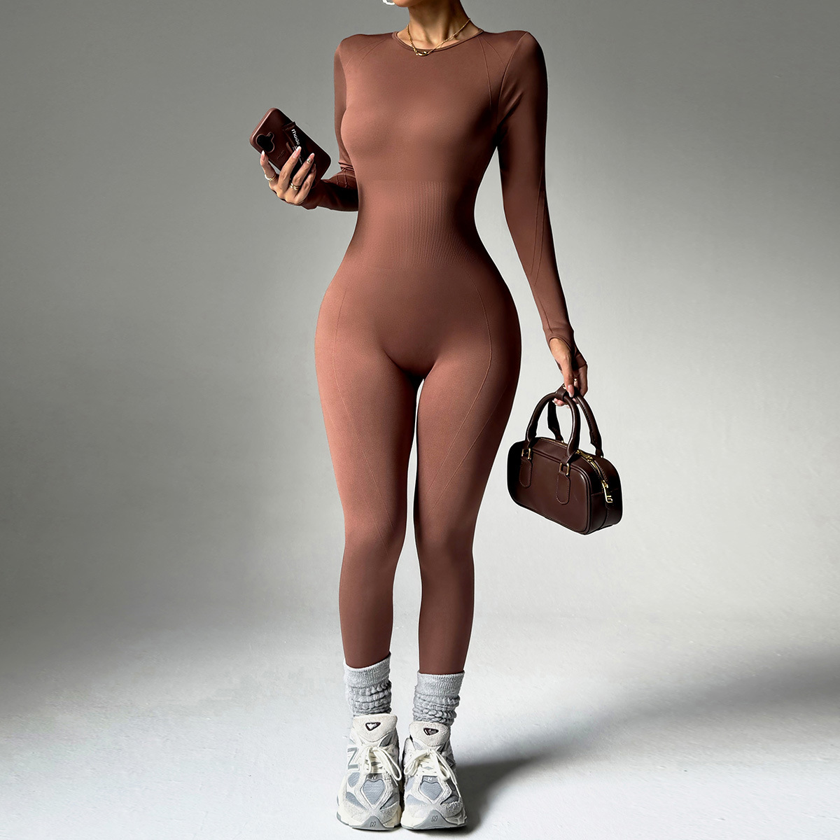 跨境欧美新款长袖连体瑜伽服女健身运动透气连体衣秋冬瑜伽裤套装