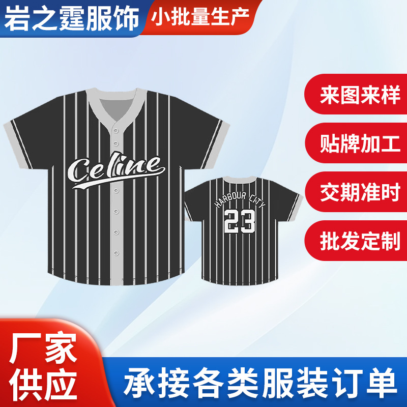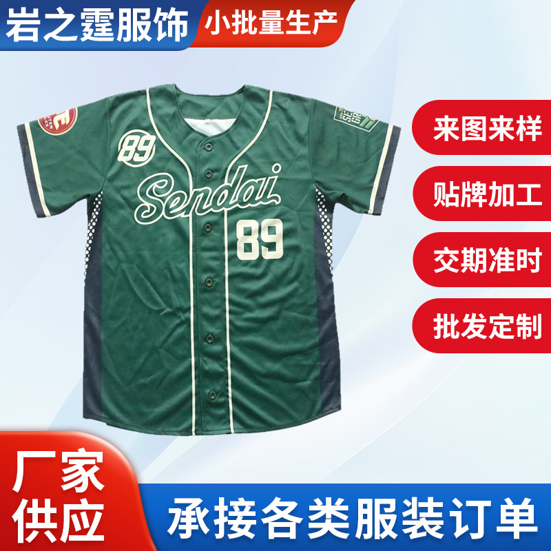 定制美式棒球服短袖欧美比赛训练数码热升华开衫对位刺绣球衣定做