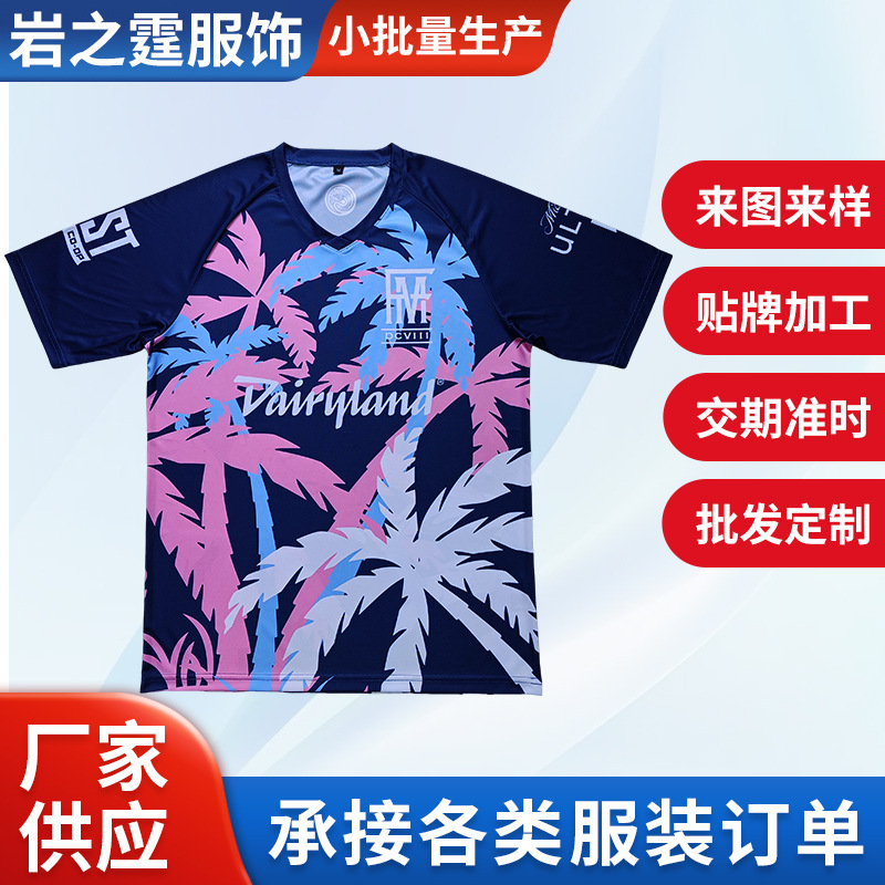 美式大码满版热升华t恤定制150g速干全涤平纹布3d数码印v领球衣男