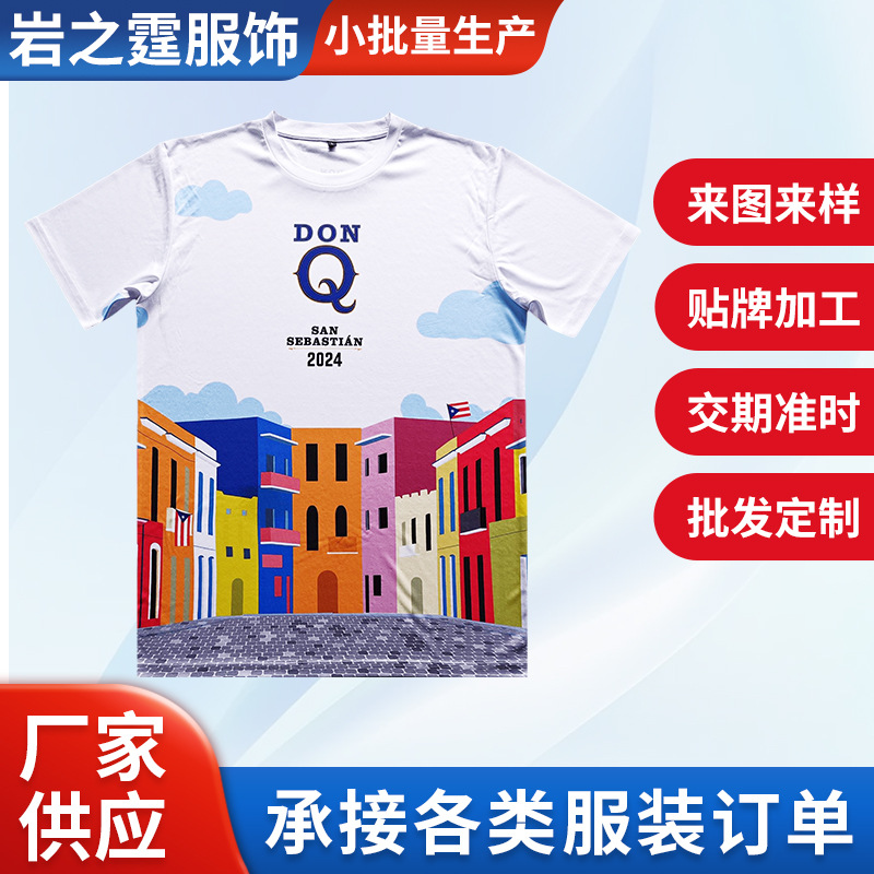定制整件数码印T恤夏季圆领短袖运动半袖热升华打底衫男透气吸汗