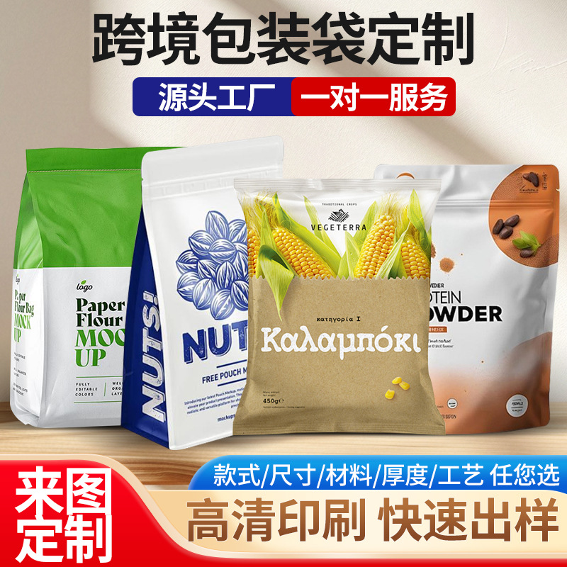 定制跨境包装袋彩印塑料食品袋印刷复合自立铝箔外贸自封拉链袋