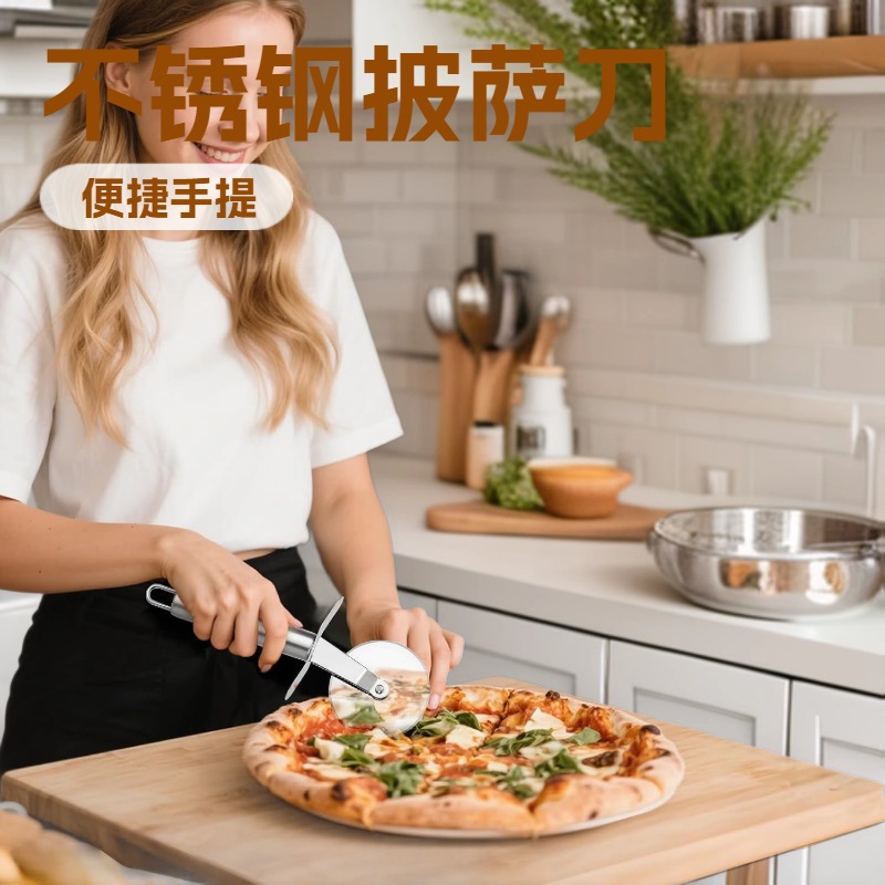 跨境现货家用不锈钢手柄披萨刀烘焙工具不锈钢介饼刀厨房小工具