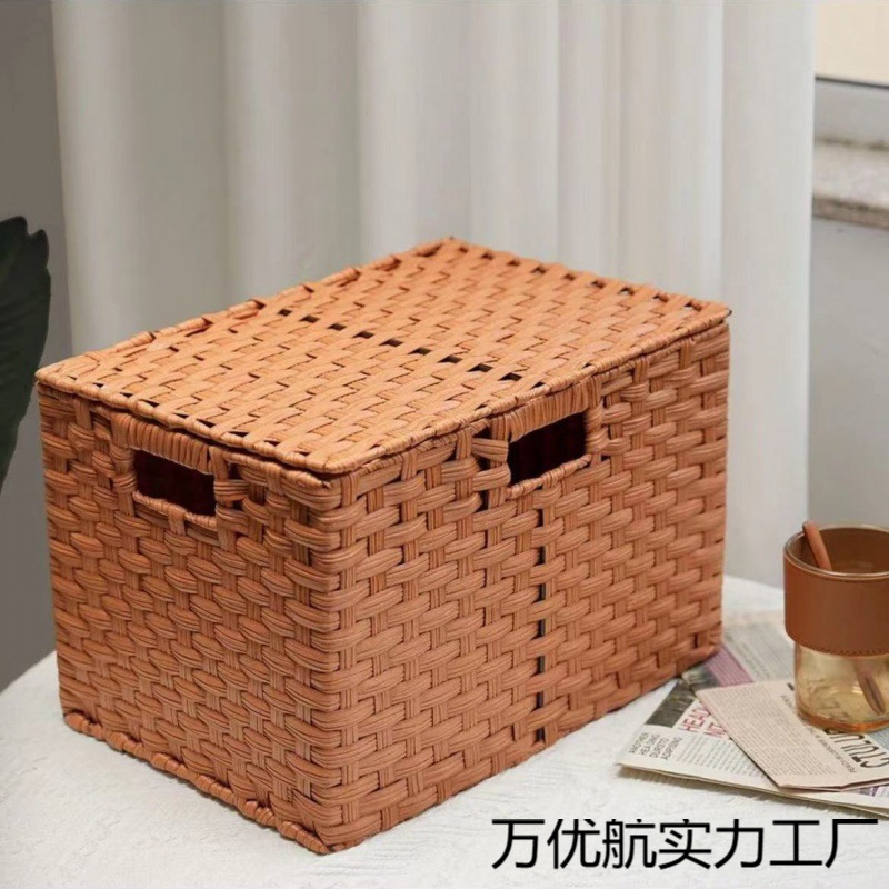 塑编收纳箱家用整理筐带盖零食玩具杂物储物筐东润艺车载包邮批发