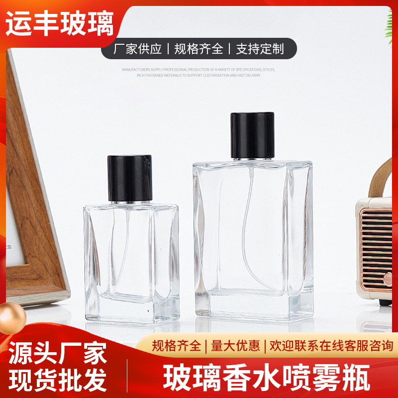 扁平四方形30ml50ml100ml空玻璃香水瓶卡口方形透明香水分装空瓶