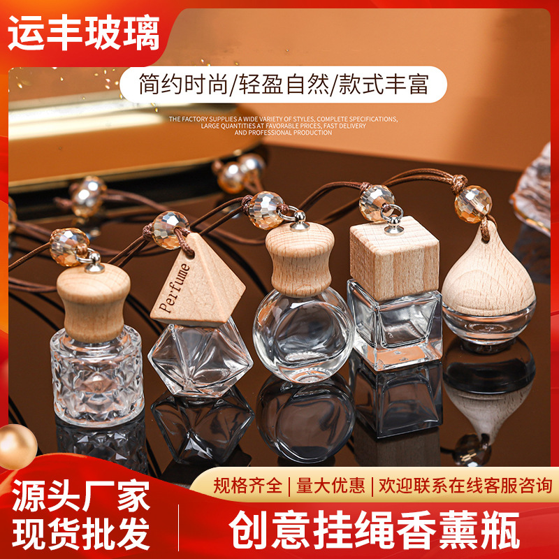 三角盖带挂绳香薰挂件玻璃空瓶车载香薰瓶子裸瓶家用简约香水瓶
