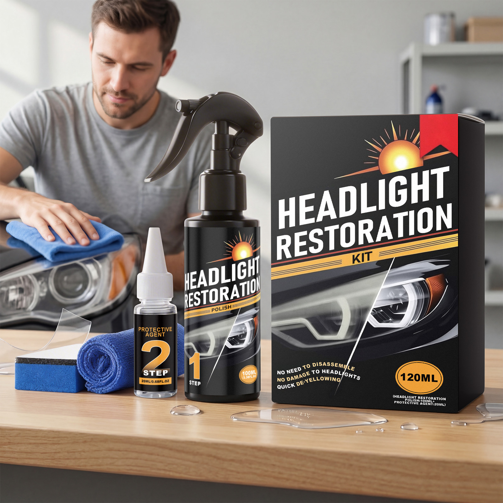 汽车大灯护理套装 汽车大灯日常翻新清洁去污表面防护清晰护理剂