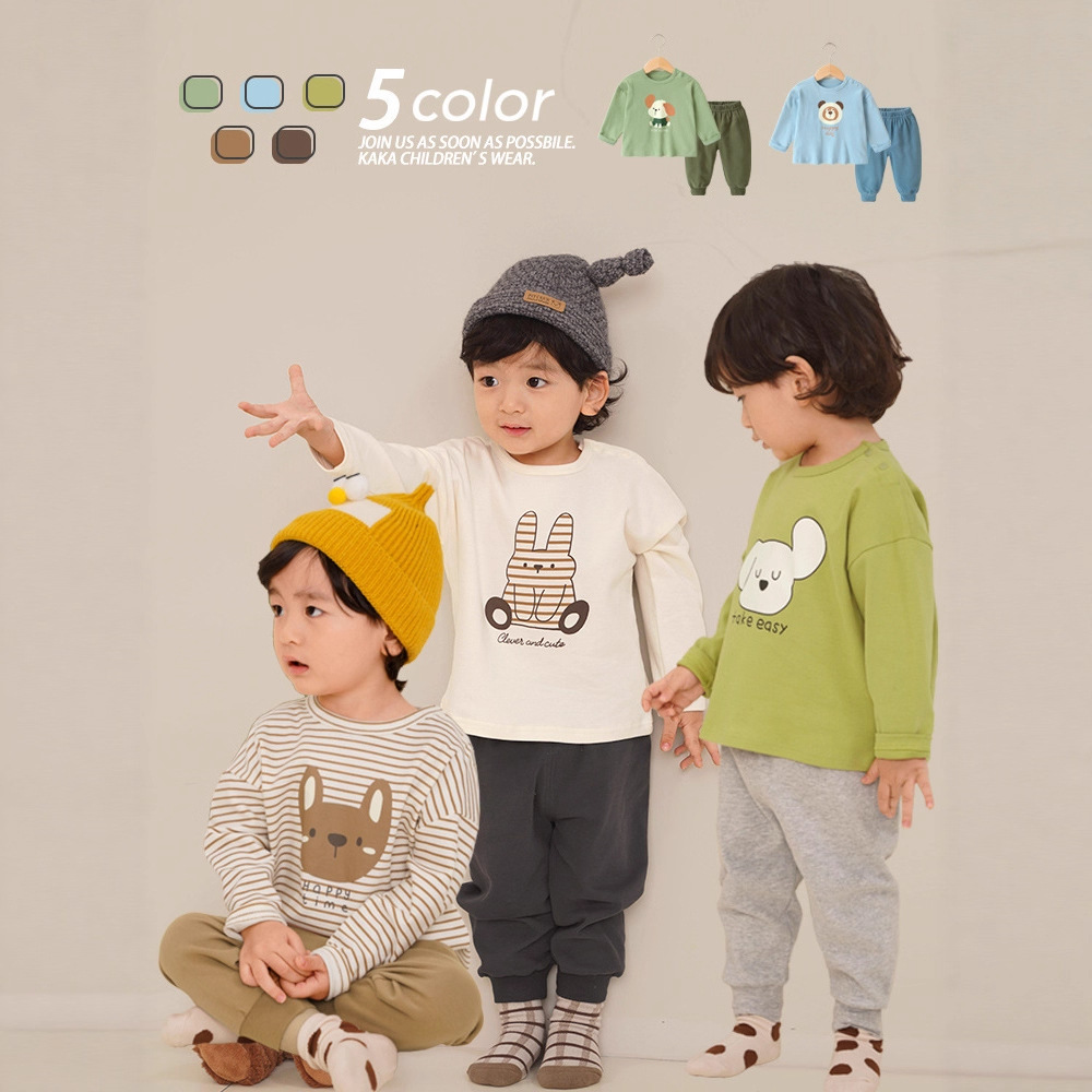 春秋季婴儿棉质感家居服套装男童女童宝宝卡通睡衣秋衣秋裤两件套