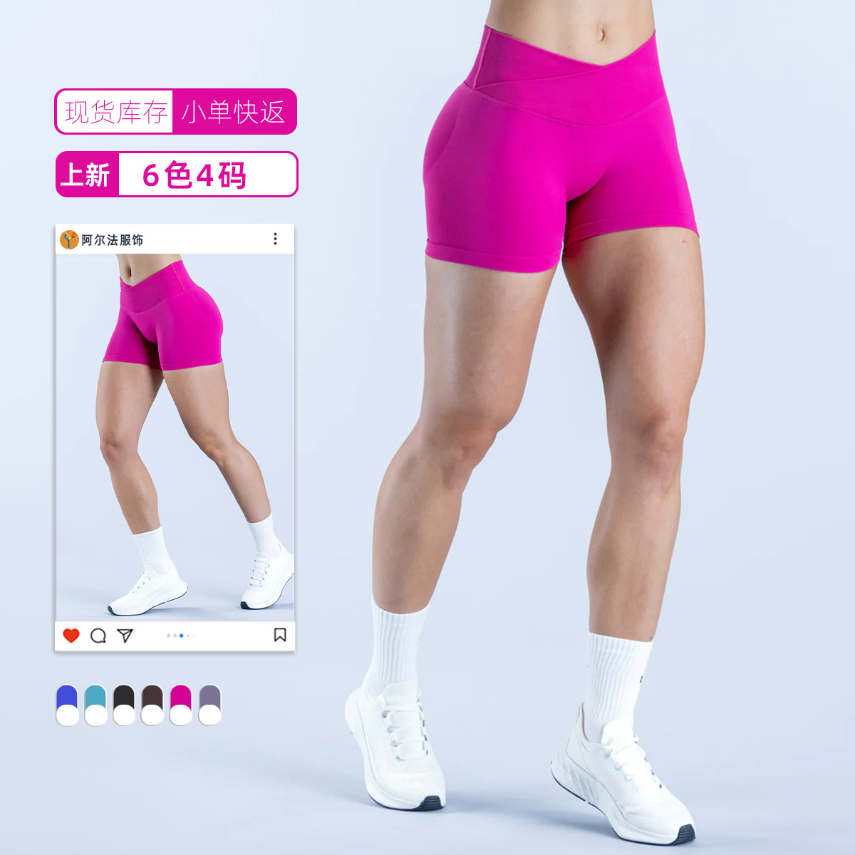 阿尔法跨境新款交叉前V瑜伽裤女消光弹力跑步蜜桃臀健身运动短裤