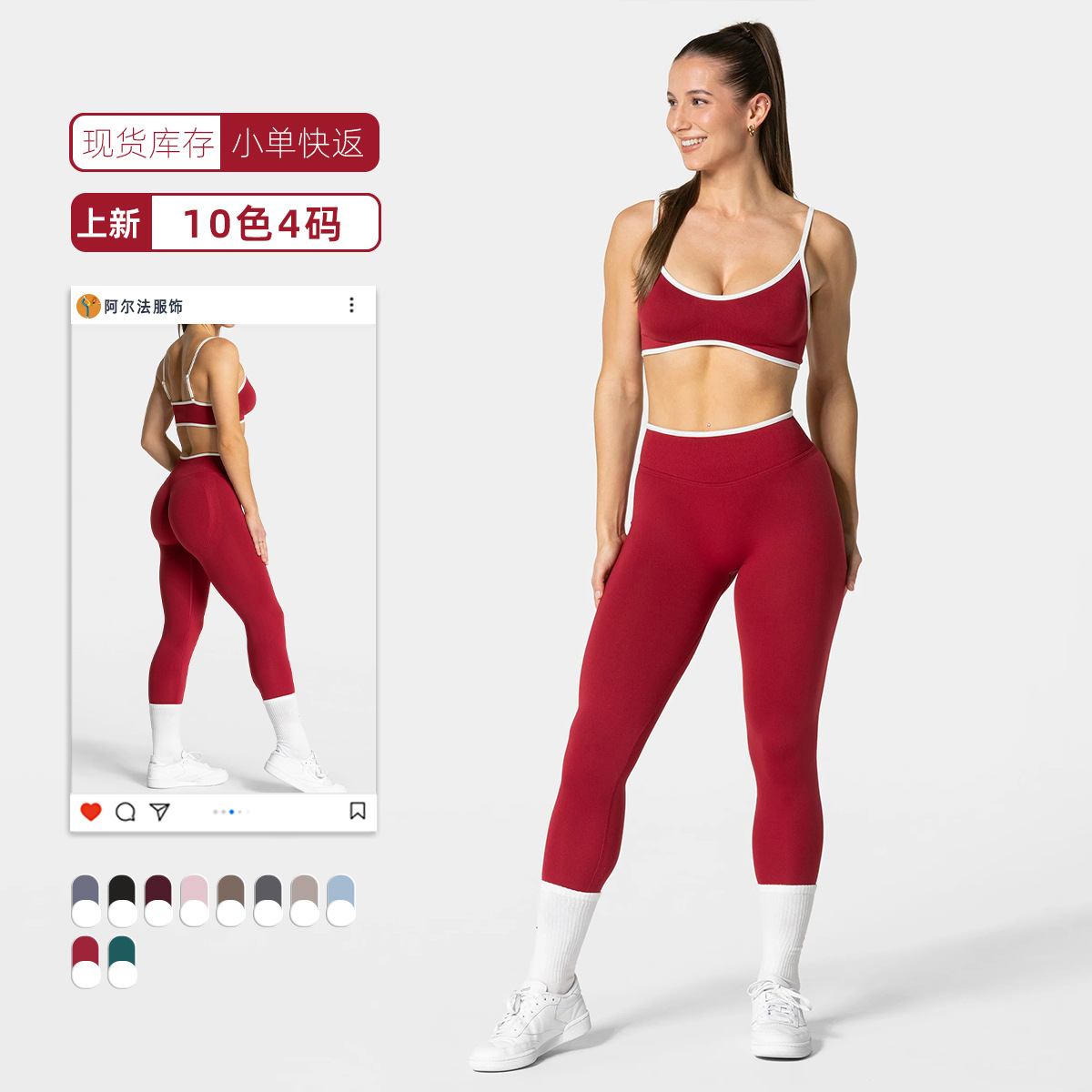2025新款户外运动瑜伽裤欧美健身无缝瑜伽长裤女高腰提臀撞色长裤