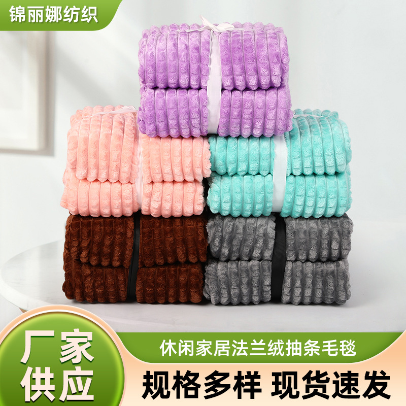抽条毛毯 简约羊羔绒盖毯 纯色法兰绒毛毯办公室午睡沙发盖毯批发