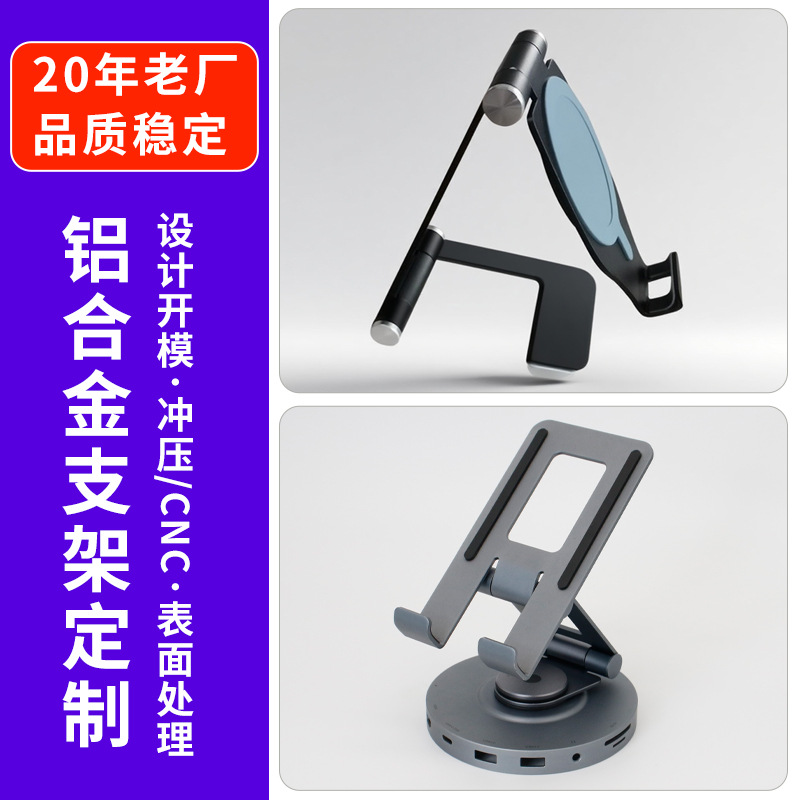 铝合金支架cnc加工冲压厂一体机电脑手机支架工业铝型材冲孔喷砂
