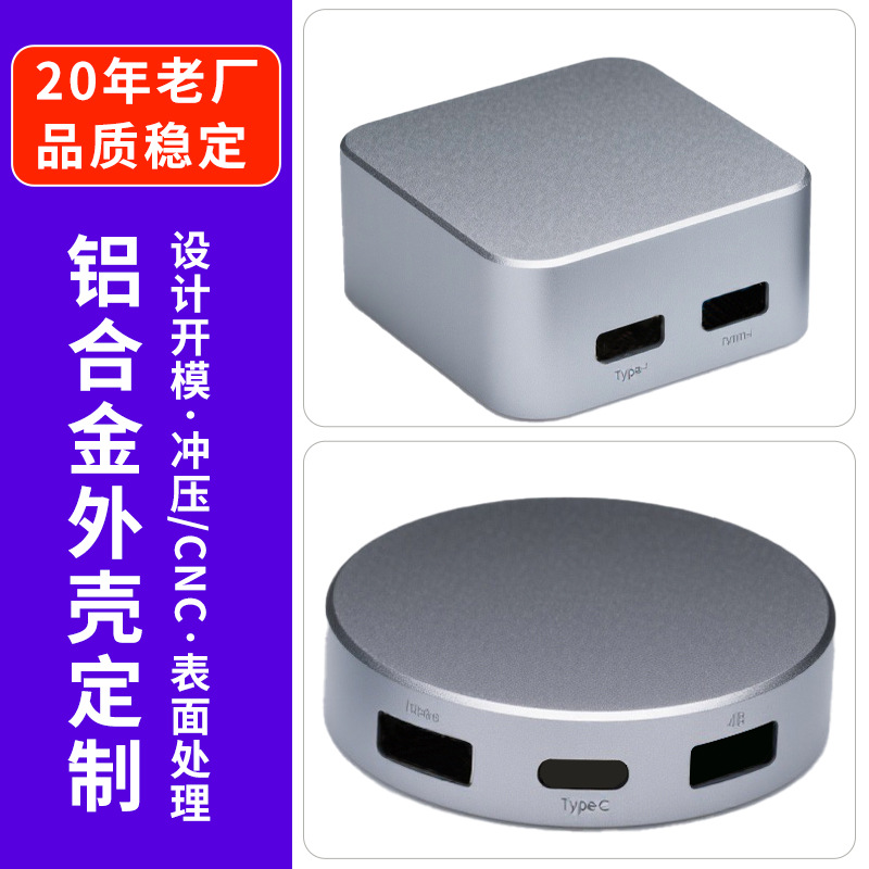 铝合金拓展坞外壳Type-C扩展坞私模开发铝合金氧化HUB接口HUB外壳