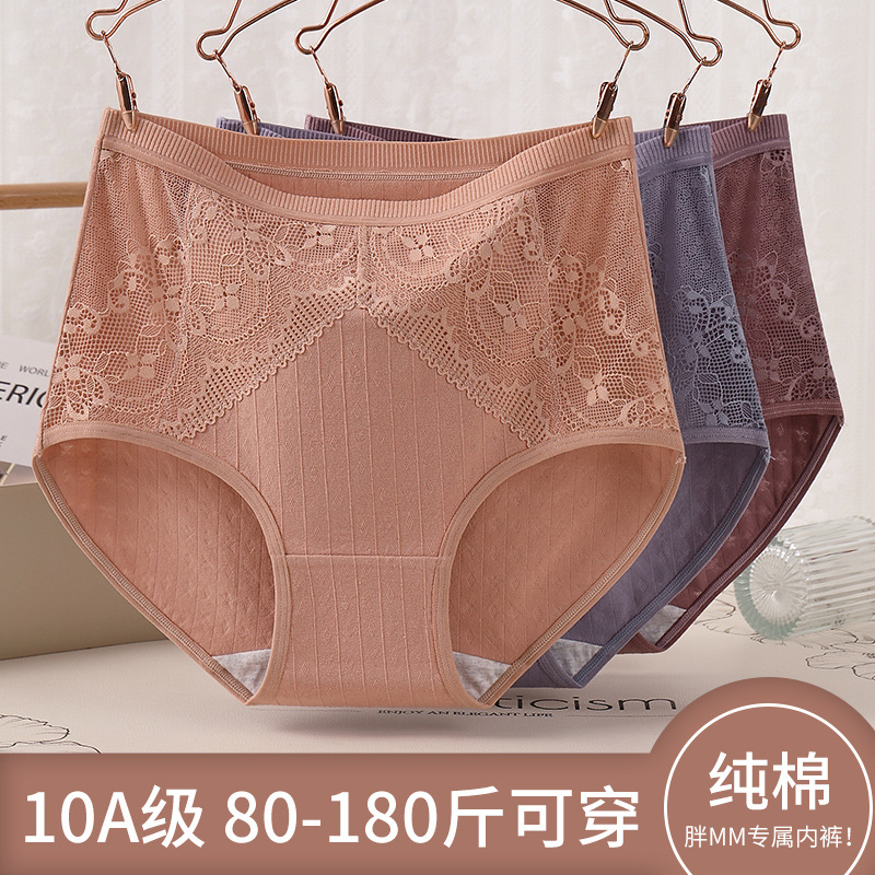 夏秋纯棉妈妈内裤加肥加大码中老年女三角裤蕾丝高腰透气三角裤头
