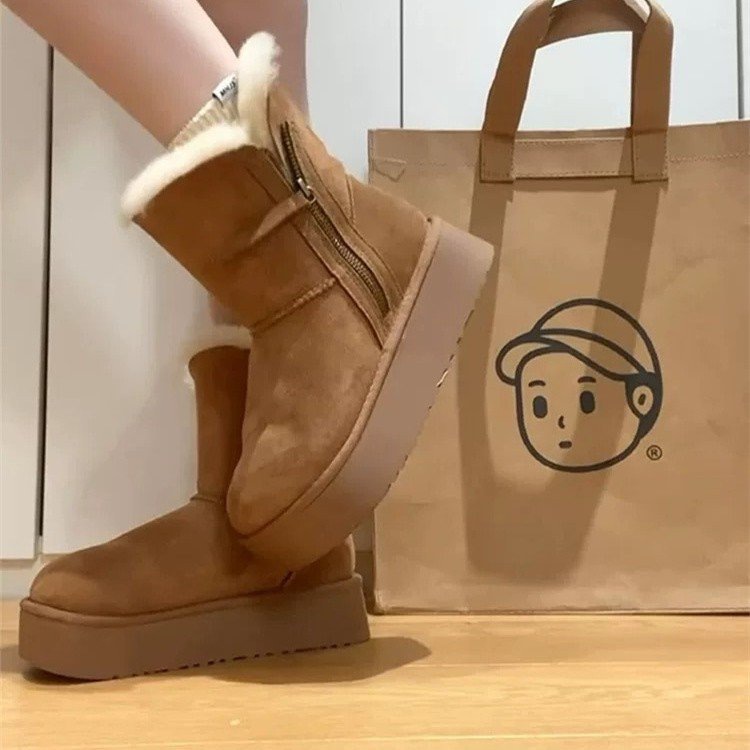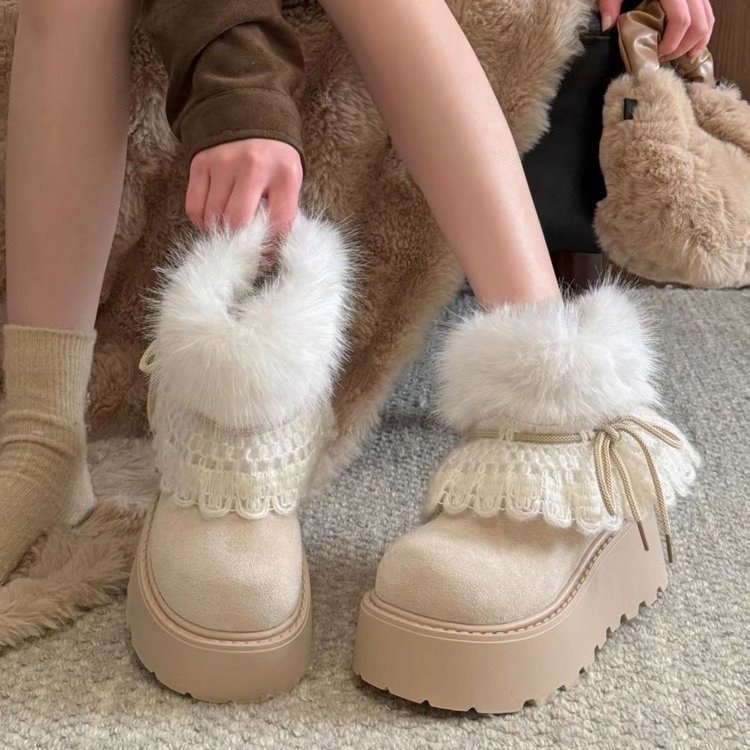 跨境厚底增高加绒加厚东北防寒雪地靴保暖短靴女2025新款毛毛绒棉