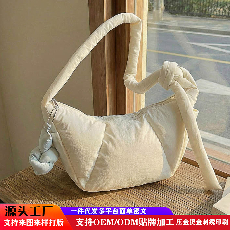 新款蝴蝶结棉服饺子包 小众ins云朵腋下包包 高颜值女式单肩背包
