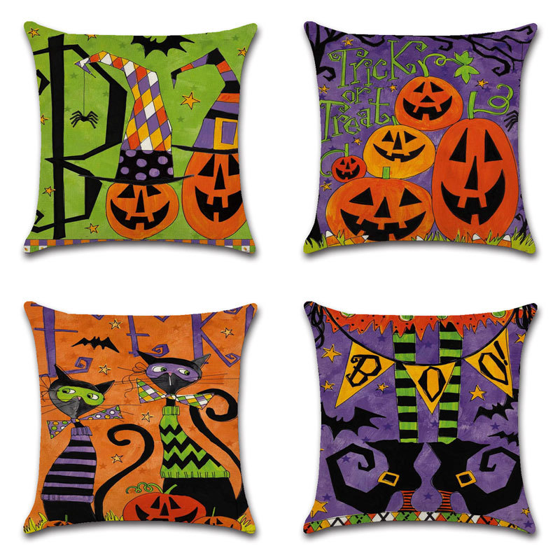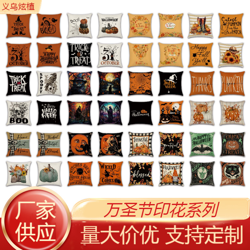 亚马逊跨境爆款万圣节系列印花亚麻抱枕套多款可选厂家供应
