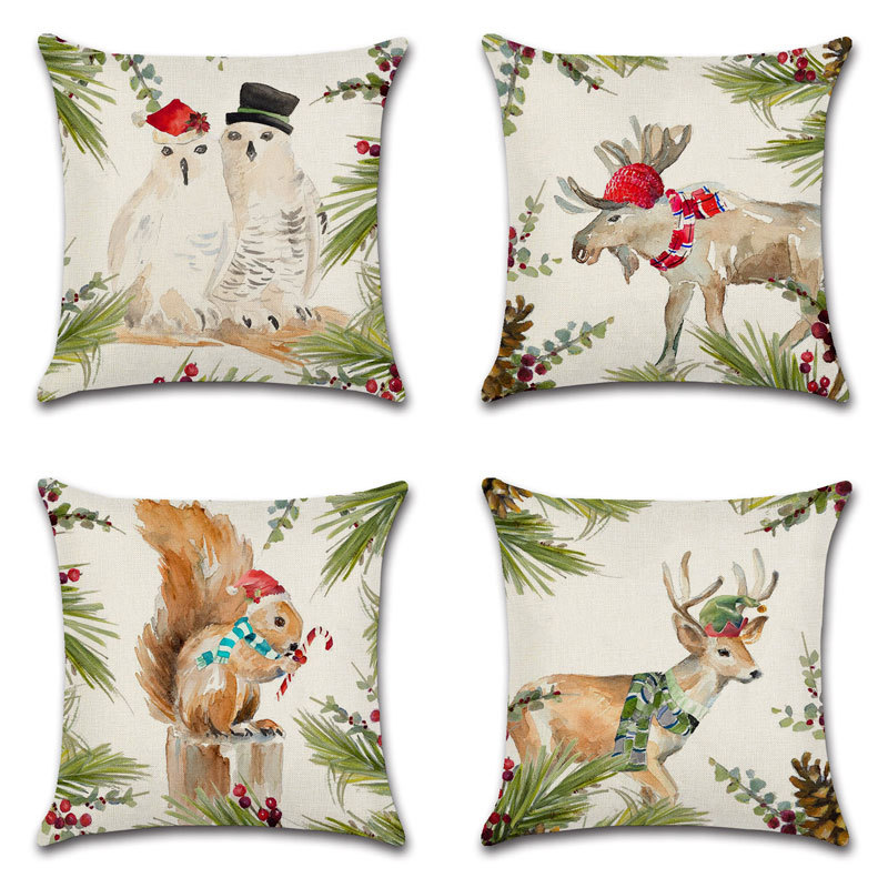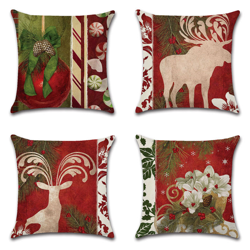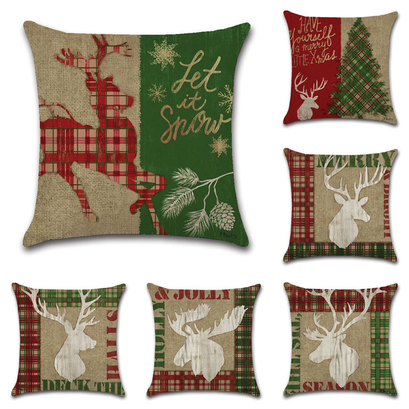 圣诞节跨境抱枕套亚麻亚马逊麋鹿卡通节日喜庆居家客厅沙发靠枕套