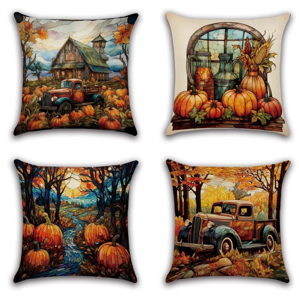 亚麻抱枕套现代简约汽车沙发居家客厅靠枕套万圣节与秋天
