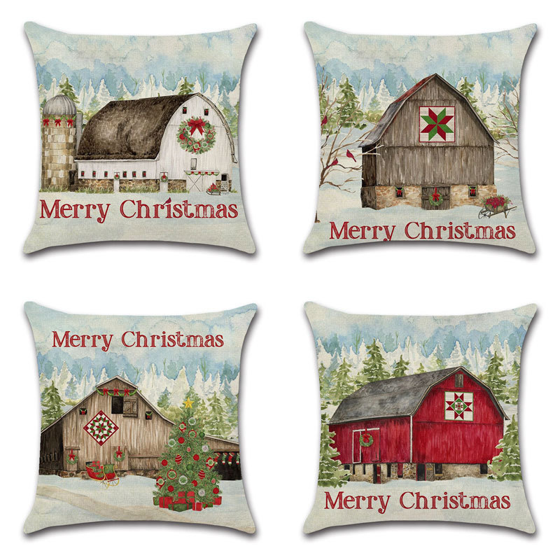 圣诞节抱枕套ins风2022爆款卡通动漫圣诞节雪地复古小房子靠枕套