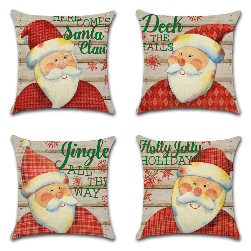 圣诞节抱枕套亚麻亚马逊跨境卡通可爱圣诞老人ins小清新居家枕套