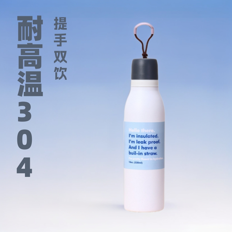 跨境同款保温杯304不锈钢提手双饮运动水壶便携式登山旅行