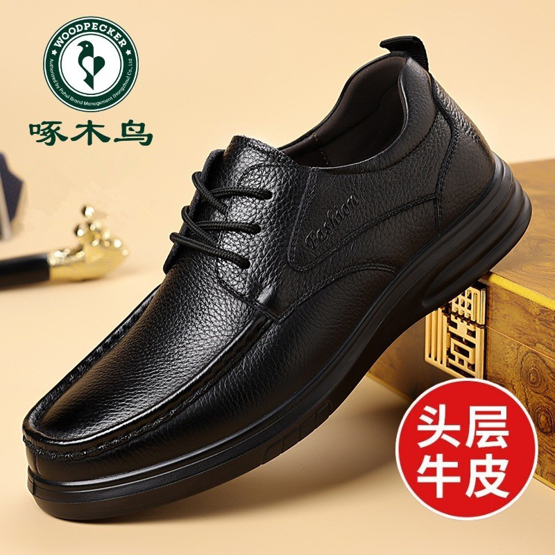 啄木鸟男鞋真皮商务休闲皮鞋男士头层牛皮软底透气中老年爸爸鞋子