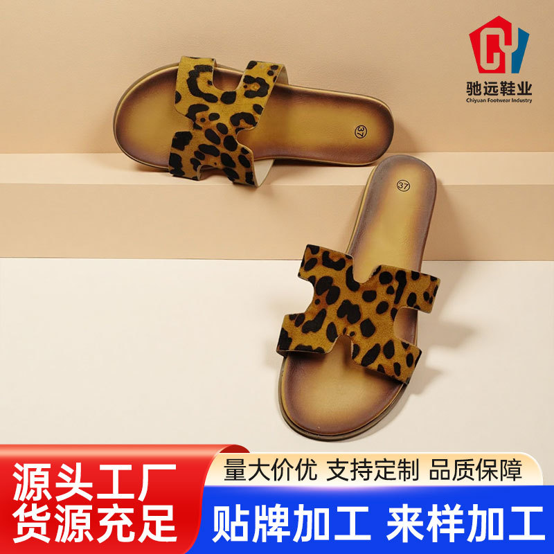 外贸工厂女鞋春季新款时尚平底舒适百搭沙滩外穿一字拖豹纹拖鞋